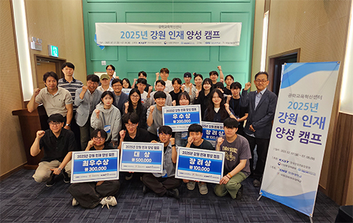 문정호 공학교육혁신센터장은 “이번 캠프는 지역 문제 해결을 통해 학생들의 창의성과 실무 역량을 높이는 뜻깊은 자리였다”며 “특히 국립강릉원주대학교와 강원대학교 학생들이 한 팀으로 협력하여 문제를 해결하는 과정에서 실질적인 교류와 화합이 이뤄졌다는 점에서 더욱 의미가 크다”고 밝혔다.