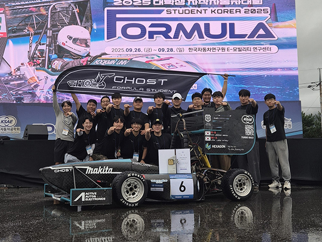 자동차공학과 자작자동차동아리 GHOST 팀(지도교수 최민성, 팀장 오정석 외 15명)이 ‘2025 Formula Student Korea’ 대회 내연기관(ICE) 부문에서 금상을 차지하는 쾌거를 거두었다.